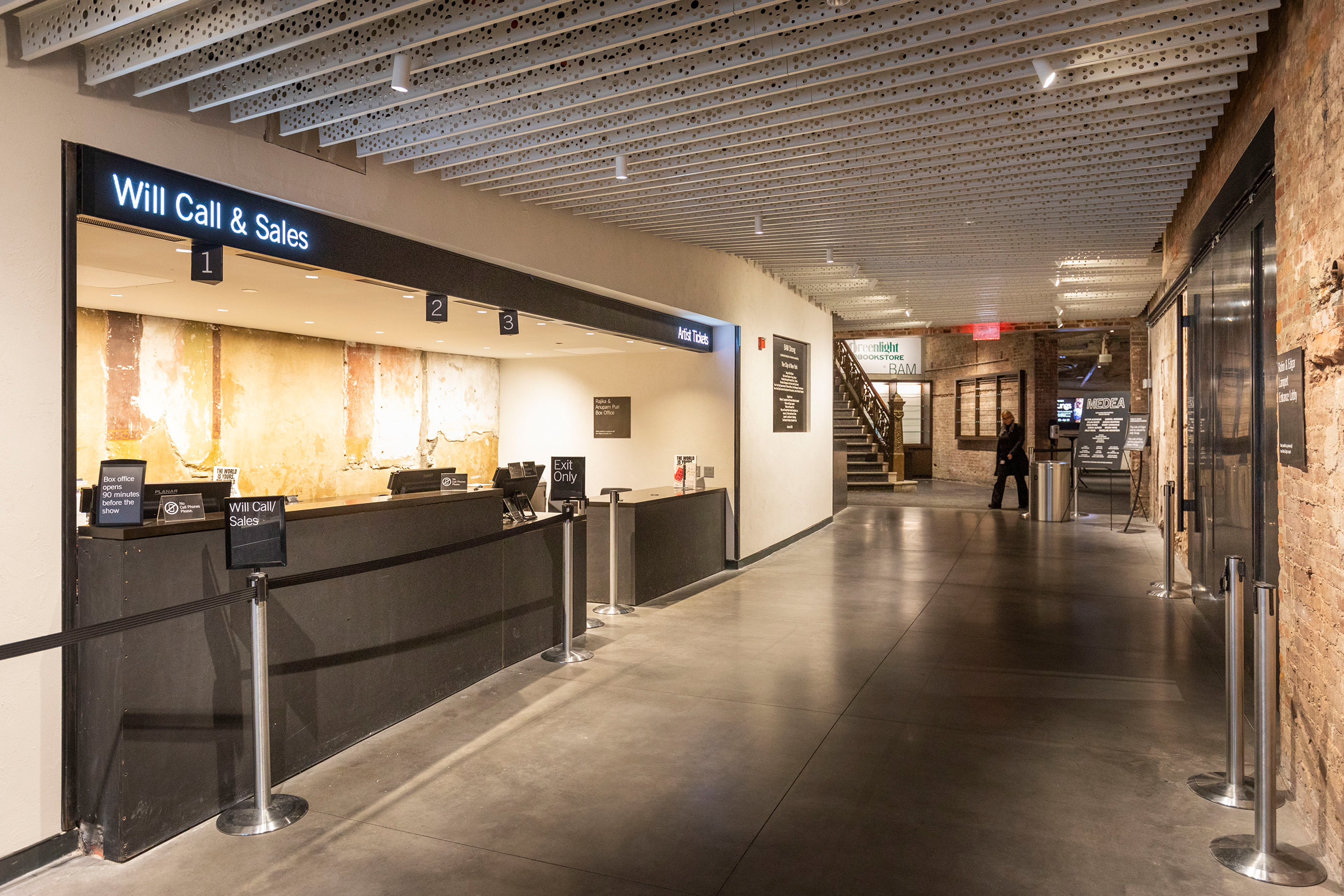 The complete BAM Strong renovation facilities increased engagement with the surrounding community and Downtown Brooklyn Cultural District and creates an interior aesthetic that lives comfortably with the distressed appearance of its historic legacy. Renovations to the public spaces and new patron amenities include an expanded lobby and customer services, patrons lounge, art gallery, cafe and retail space. The entire complex has also been made ADA compliant with a new elevator reaching all four floors. An artful restoration of the original aging facade and a distinctive 180 ft. long marquee unifies the three properties and gives the theater a visible presence consistent with its importance to the cultural life of the district.
