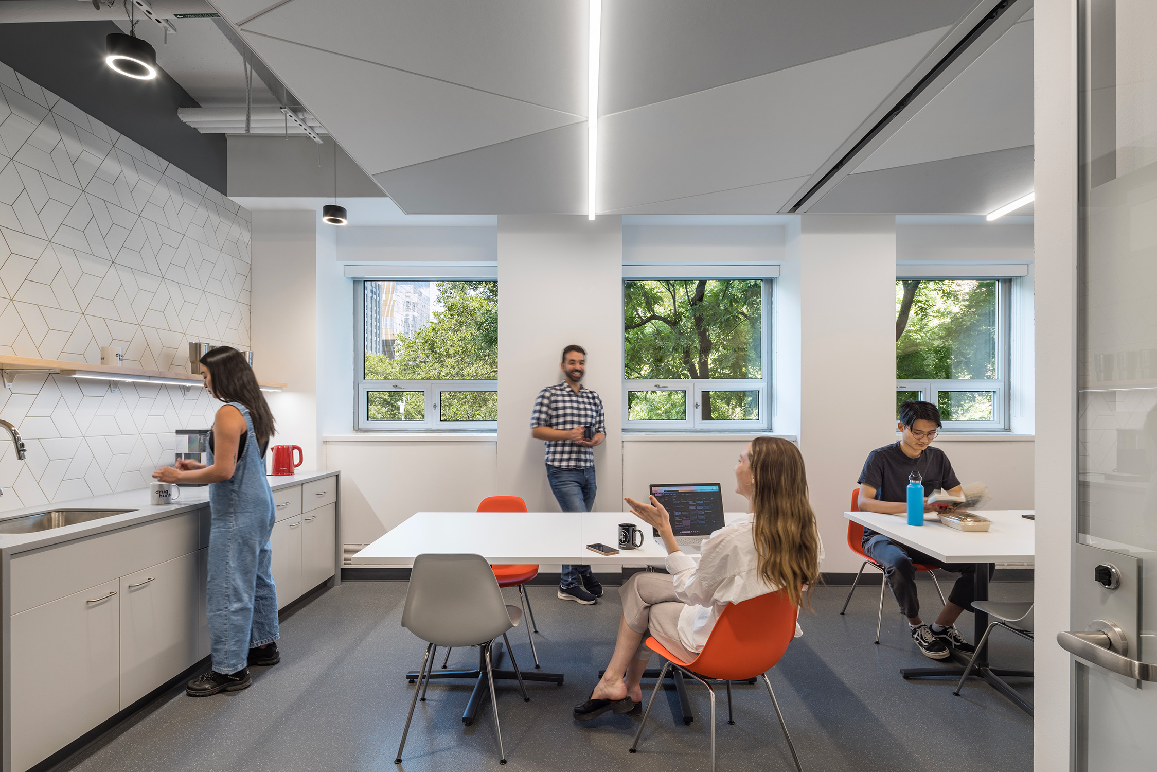 Built in 1959, the Bronk Building contains research laboratories and is located at the south end of Rockefeller University’s famous Plane tree-lined terrace. Mitchell Giurgola was retained to renovate the 4th floor for the Ford Center for Life Science Innovation, an incubator that will provide space to 15-20 start-up companies, and the 5th and 6th floors for the Tri-Institutional Therapeutics Discovery Institute (Tri-I TDI), made up of researchers from Memorial Sloan Kettering Cancer Center, Weill Cornell Medicine and Rockefeller University working to advance biological discoveries to preclinical studies.