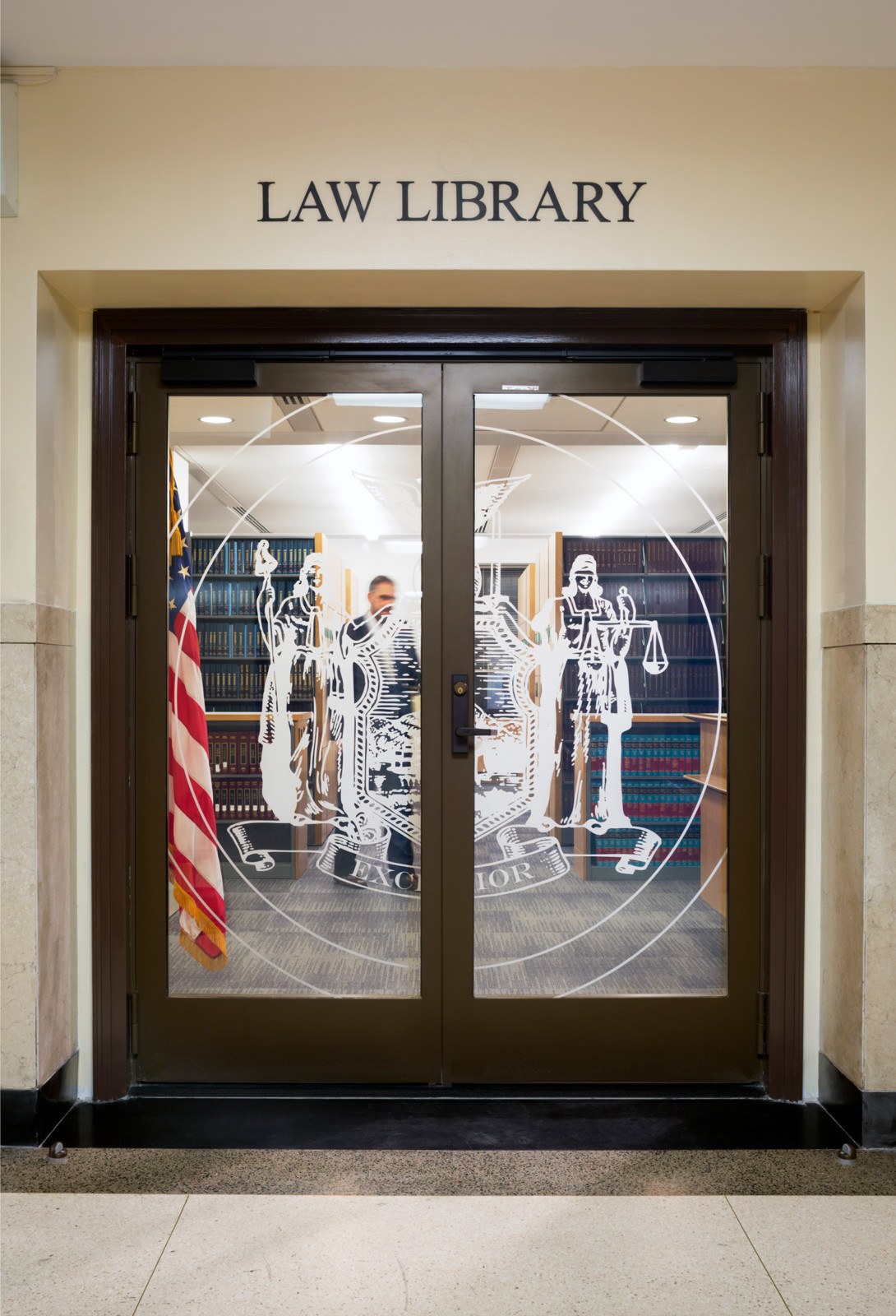 Mitchell Giurgola designed the multi-phase gut renovation that spanned approximately 54,000 square-feet across seven floors. The renovation work included courtrooms, office areas, the law library, document storage rooms, the jury assembly room, and mechanical rooms to support the renovated areas.