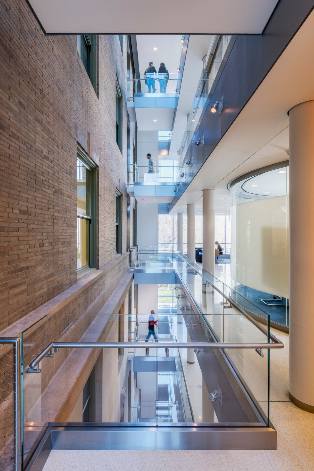 The Collaborative Research Center evolved out of Rockefeller University’s vision to foster interdisciplinary research and greater intellectual exchange through collaboration and unexpected encounters. The project consisted of the complete interior and exterior renovation of Smith and Flexner, two six-story buildings from 1917 and 1929, and the construction of a new bridging building that joins the two sites.