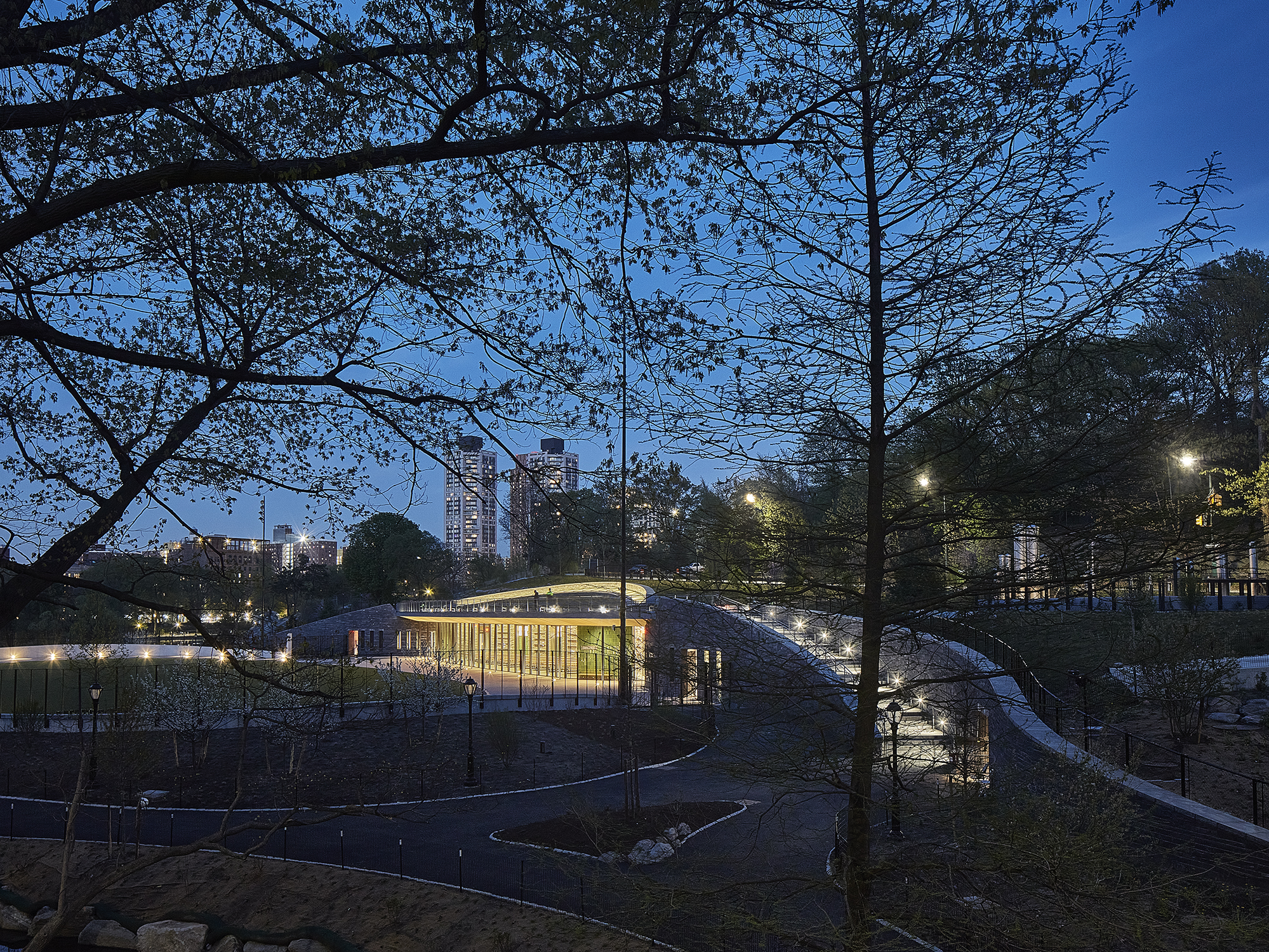 Mitchell Giurgola worked in collaboration with Susan T. Rodriguez | Architecture • Design and the Central Park Conservancy on the New Davis Center at the Harlem Meer. Constructed in 1966, the original Lasker Rink and Pool had become an unsightly barrier at the northern end of Central Park. The Harlem Meer project transformed the site into a contemporary recreation facility, seamlessly integrated into the landscape. More than a year of extensive community engagement went into the design of this project. The $160 million dollar project is the largest project in the Central Park Conservancy’s history.